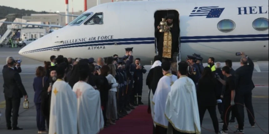 Έφτασε στις 19:37 στο αεροδρόμιο της Αθήνας «Ελευθέριος Βενιζέλος» το κυβερνητικό αεροσκάφος που μετέφερε το Άγιο Φως από το Πανίερο Ναό της Αναστάσεως στα Ιεροσόλυμα. Αμέσως ξεκίνησε η διανομή του σε όλη την Ελληνική επικράτεια με ειδικές πτήσεις της Aegean, της Olympic Air και της Sky Expresss.