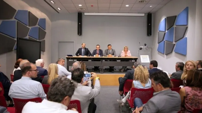 Οι κ.κ. Κικίλιας και Κοντοζαμάνης παρέδωσαν αναμνηστική τιμητική πλακέτα στους εκπροσώπους των δύο ενώσεων των ιδιωτικών κλινικών.