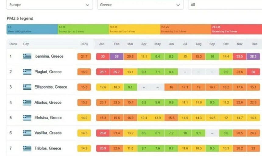Οι 10 πιο μολυσμένες περιοχές στην Ελλάδα, για το 2024, είναι: