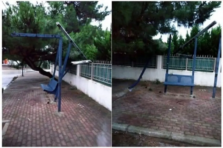 όταν αυτοκίνητο έπεσε πάνω σε στάση λεωφορείου στην πλατεία τα ξημερώματα του Σαββάτου.