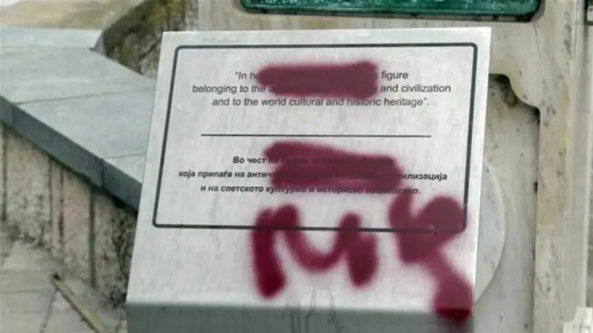 Άγνωστοι βανδάλισαν πινακίδες σε 6 αγάλματα ιστορικών αρχαιολογικών φυσιογνωμιών, κοντά στην κεντρική πλατεία των Σκοπίων.