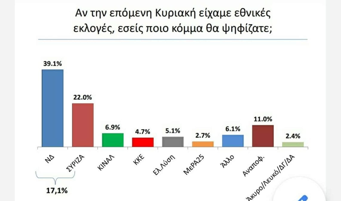 ΣΤΑΘΕΡΗ ΥΠΕΡΟΧΗ ΤΗΣ ΝΔ- 17.1 ΜΟΝΑΔΕΣ ΠΡΟΗΓΕΙΤΑΙ Η ΝΔ ΤΟΥ ΣΥΡΙΖΑ ΕΝ ΜΕΣΩ ΠΑΝΔΗΜΙΑΣ