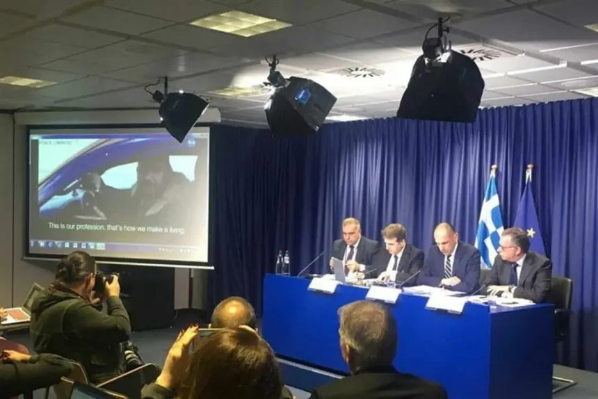 Προσφυγικό Ελλάδα: Ο υπουργός Επικρατείας, Γιώργος Γεραπετρίτης, ο υπουργός Προστασίας του Πολίτη, Μιχάλης Χρυσοχοΐδης και ο αναπληρωτής υπουργός Μετανάστευσης και Ασύλου, Γιώργος Κουμουτσάκος, έδωσαν συνέντευξη Τύπου σε ελληνικά και διεθνή μέσα ενημέρωσης για το Προσφυγικό, την Τετάρτη 4 Μαρτίου 2020 στις Βρυξέλλες, στο περιθώριο της συνεδρίασης του Συμβουλίου Δικαιοσύνης και Εσωτερικών Υποθέσεων της Ε.Ε.. Παρουσίασαν τις ενέργειες της ελληνικής κυβέρνησης για την αντιμετώπιση της κρίσης στα σύνορα με την Τουρκία και προσπάθησαν να αποδομήσουν τα fake news που διακινεί η Άγκυρα.