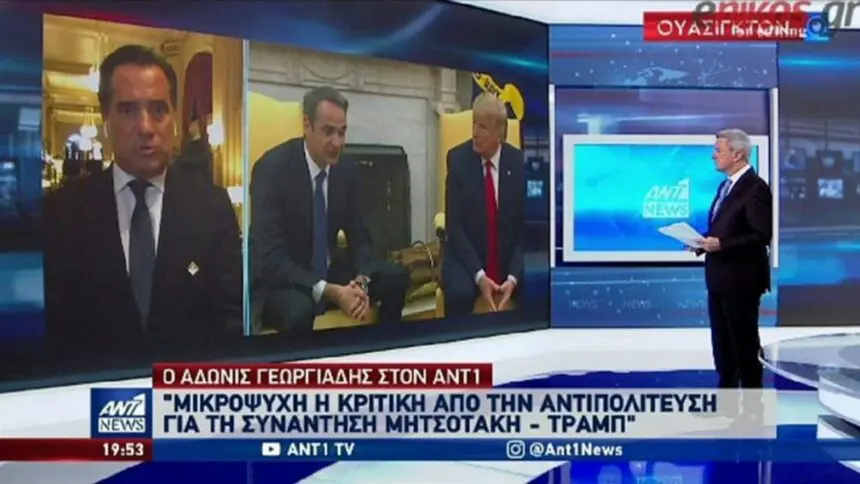Στο κεντρικό δελτίο ειδήσεων του ΑΝΤ1 με τον Νίκο Χατζηνικολάου μίλησε ο υπουργός Επενδύσεων και Ανάπτυξης, Άδωνις Γεωργιάδης και σχολιάζοντας την κριτική για τη συνάντηση Μητσοτάκη – Τραμπ στον Λευκό Οίκο τόνισε πως «είναι εξαιρετικά μικρόψυχη η κριτική του ΣΥΡΙΖΑ και δείχνει ότι δεν χώνεψαν ακόμη ότι έχασαν τις εκλογές στις 7 Ιουλίου».