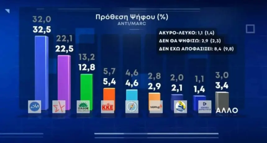 Δημοσκόπηση Marc Ιουνίου: Η διαφορά ανάμεσα σε ΝΔ και ΣΥΡΙΖΑ