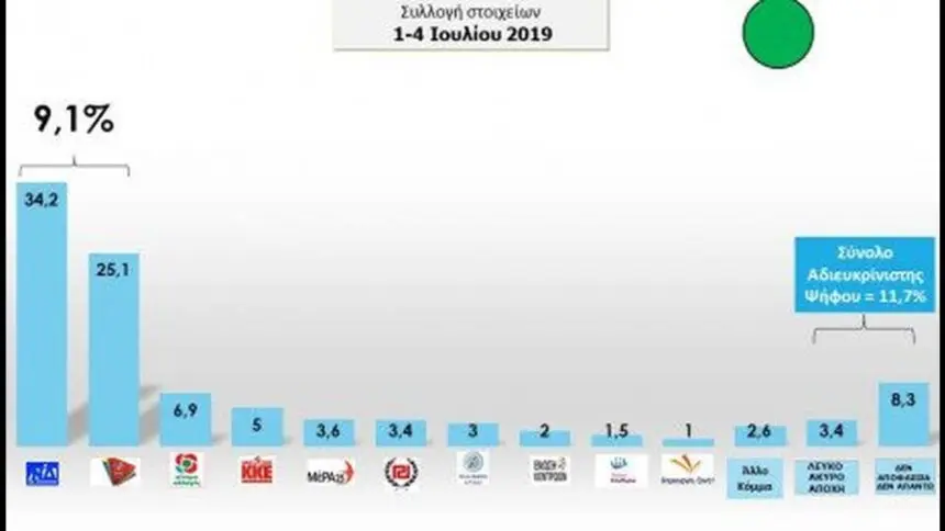 Εντυπωσιακό είναι το γεγονός ότι το σύνολο της αδιευκρίνιστης ψήφου, μόλις δύο μέρες πριν από τις εκλογές, ανέρχεται στο 11,7%.