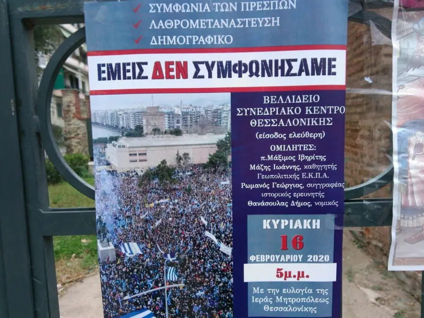 Τα Ορθόδοξα Χριστιανικά Σωματεία της Θεσσαλονίκης, από την καρδιά της μίας και ελληνικής Μακεδονίας, με την ευλογία του Παναγιωτάτου Μητροπολίτου Θεσσαλονίκης κ. Ανθίμου, διοργανώνουν εκδήλωση διαμαρτυρίας την Κυριακή 16 Φεβρουαρίου στις 5 μ.μ. στο Βελλίδειο Συνεδριακό Κέντρο Θεσσαλονίκης, με θέμα τις ανησυχητικές εξελίξεις που λαμβάνουν χώρα στην πατρίδα μας ερήμην της βούλησης του κυριάρχου ελληνικού λαού.