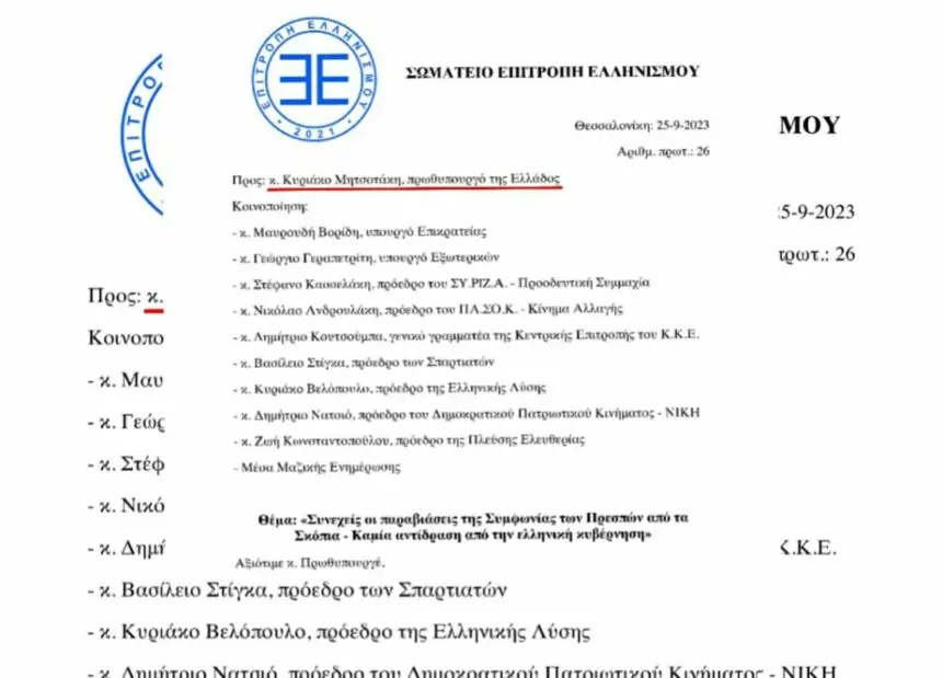 Προς: κ. Κυριάκο Μητσοτάκη, πρωθυπουργό της Ελλάδος