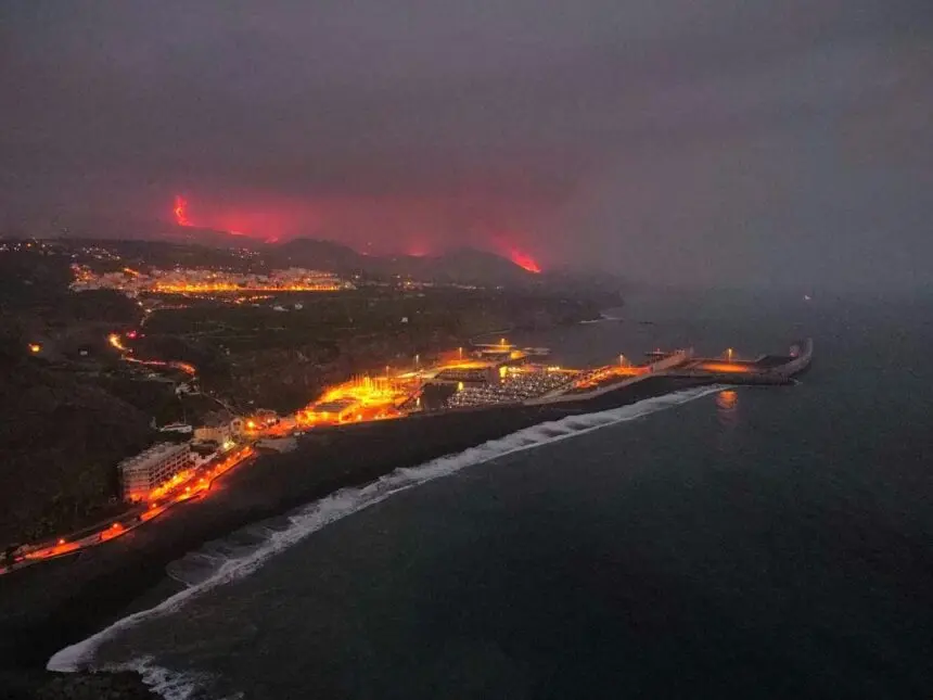 Ήταν λίγο μετά τις 23:00 (τοπική ώρα, 01:00 ώρα Ελλάδας) όταν το Ινστιτούτο Ηφαιστειολογίας των Καναρίων (INVOLCAN) ανακοίνωσε ότι η ηφαιστειακή λάβα έφτασε στον ωκεανό. «Η ροή της λάβας έφθασε στη θάλασσα στην Πλάγια Νουέβα», διευκρίνισε το INVOLCAN μέσω Twitter.