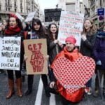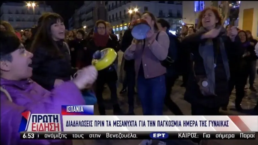 Εκατοντάδες Ισπανίδες διαδήλωσαν τα μεσάνυχτα στην Πλάζα ντελ Σολ στη Μαδρίτη για τα δικαιώματα των γυναικών με αφορμή την Παγκόσμια Ημέρα της Γυναίκας.