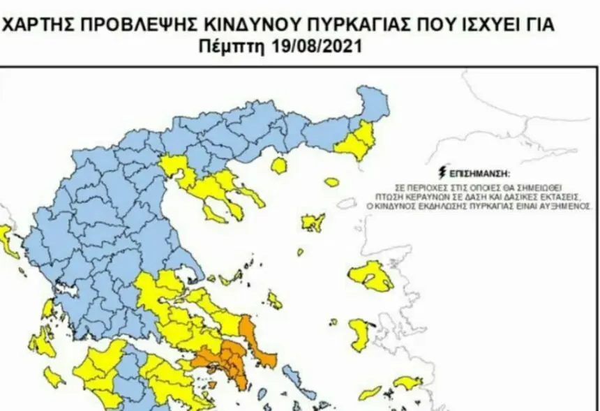 Σύμφωνα με το Χάρτη Πρόβλεψης Κινδύνου Πυρκαγιάς που εκδίδει η Γενική Γραμματεία Πολιτικής Προστασίας του Υπουργείου Προστασίας του Πολίτη (www.civilprotection.gr), για προβλέπεται υψηλός κίνδυνος πυρκαγιάς στη Θεσσαλονίκη και την Χαλκιδική. ( κατηγορία κινδύον 3 με μέγιστο το 5)