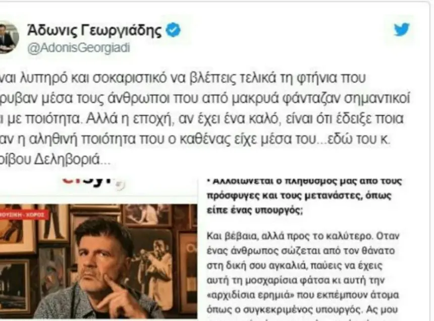 Με ανάρτησή του στο Twitter απάντησε ο Άδωνις Γεωργιάδης γράφοντας χαρακτηριστικά το εξής: