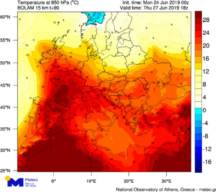 Οι συνθήκες που θα δημιουργήσουν τη θερμή «εισβολή», σύμφωνα με το meteo.gr, γεννώνται από τις θερμές αέριες μάζες από την Αφρική που θα κινούνται σε ασυνήθιστα μεγάλα γεωγραφικά πλάτη της Ευρώπης. Αυτές οι μάζες δημιουργούν συνθήκες καύσωνα σε αρκετές χώρες στα δυτικά και κεντρικά τμήματα Ευρώπης.