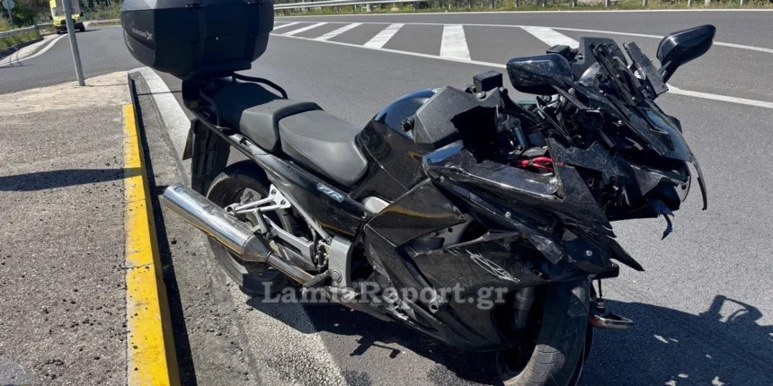 Μηχανή που κινούνταν κανονικά από Λαμία για Θερμοπύλες έπεσε στο δεξί πλαϊνό μέρος ΙΧ που κινούνταν αντίθετα και έστριψε αριστερά προς την είσοδο της εθνικής. Από το χτύπημα πάνω στο ΙΧ ο Άγγλος οδηγός της μηχανής, βρέθηκε στο οδόστρωμα. Παρά τον πλήρη εξοπλισμό και το κράνος, δεν απέφυγε τον τραυματισμό και διακομίστηκε με ασθενοφόρο στο Γενικό Νοσοκομείο Λαμίας.
