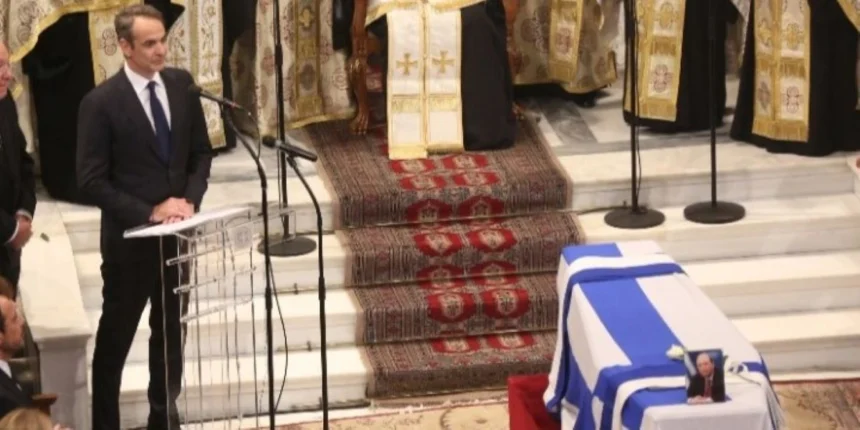 Τον δεύτερο επικήδειο στην κηδεία του Κώστα Σημίτη εκφώνησε ο πρωθυπουργός Κυριάκος Μητσοτάκης, αποχαιρετώντας τον πρώην πρωθυπουργό.