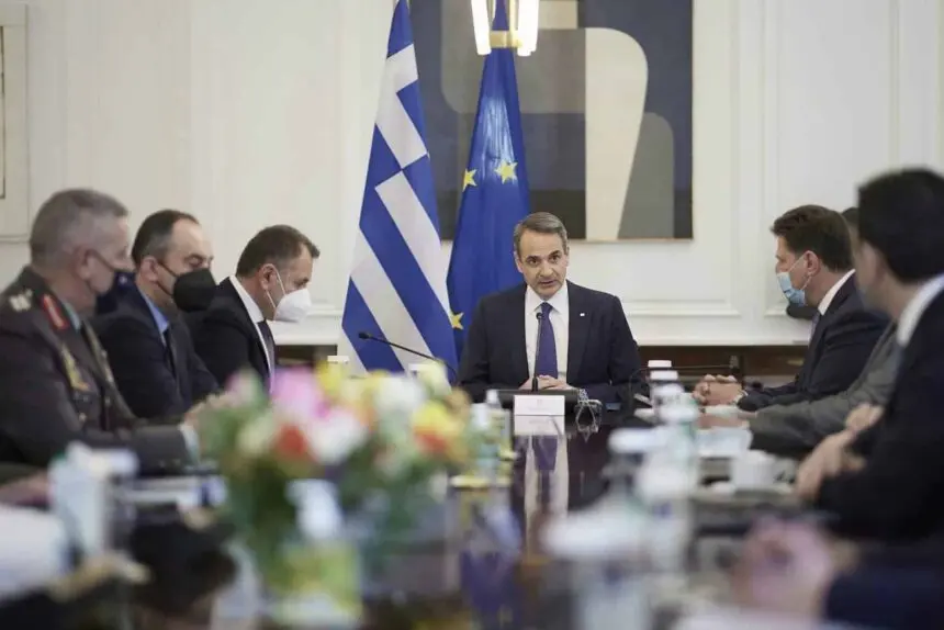 Ο πρωθυπουργός, στην έναρξη της συνεδρίασης σε δραματικούς τόνους δήλωσε ότι «Η επίθεση της Ρωσίας κατά της Ουκρανίας θέτει με δραματικό τρόπο την παγκόσμια κοινότητα ενώπιον των ευθυνών της. Γιατί στην Ουκρανική κρίση δοκιμάζονται πολλά: Τα όρια του Διεθνούς Δικαίου, η ισχύς των Συνθηκών αλλά και το ίδιο το δικαίωμα των κρατών να ζουν ελεύθερα. Όπως και απειλούνται πολλά: από τη γεωπολιτική σταθερότητα στην Ευρώπη μέχρι τη διεθνή ενεργειακή ισορροπία».