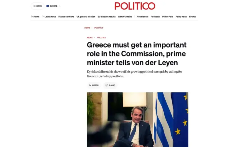 Ο έλληνας πρωθυπουργός είναι ανένδοτος στο να πάρει η χώρα του μια πολύ σημαντική θέση, όταν η Ούρσουλα φον ντερ Λάιεν συγκροτήσει την κορυφαία ομάδα της. Ο Κυριάκος Μητσοτάκης μπορεί να πάρει αυτό που θέλει, αφού έπαιξε καθοριστικό ρόλο στο να βοηθήσει την πρόεδρο της Ευρωπαϊκής Επιτροπής να εξασφαλίσει μια δεύτερη θητεία, σημειώνει το Politico.