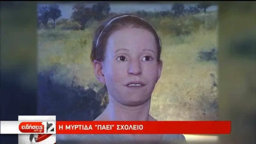 Με την άδεια του δημιουργού της, καθηγητή Ορθοδοντικής του Πανεπιστημίου Αθηνών, Μανώλη Παπαγρηγοράκη,ο οποίος από το κρανίο της ανέπλασε το πρόσωπό της, μαζί με την επιστημονική του ομάδα, η «Μύρτιδα» επισκέφθηκε τους μαθητές του 2ου και 3ου Δημοτικού σχολείου της Νέας Ερυθραίας.