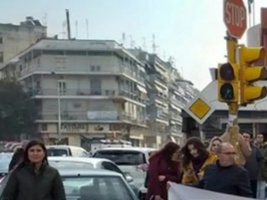 Μια ακόμη παράσταση διαμαρτυρίας πραγματοποιείται έξω από τα γραφεία του ΟΑΣΘ στην οδό Παπαναστασίου από μέλη της Πρωτοβουλίας για τις αστικές συγκοινωνίες της Θεσσαλονίκης.