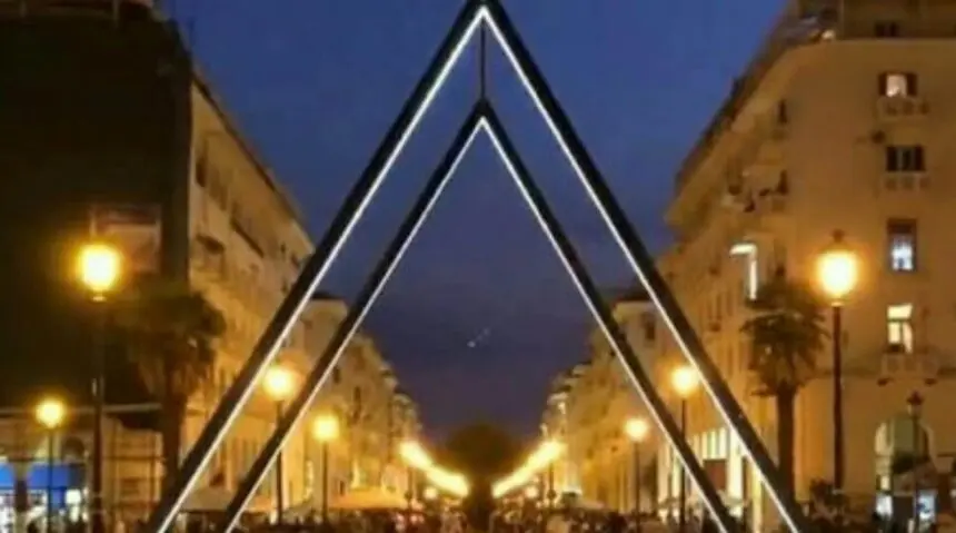 Χθες έγινε και η πρώτη πρόβα με τον δοκιμαστικό φωτισμό εορταστικού στολισμού, στο πέταλο της Αριστοτέλους.