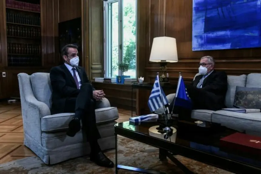 Στο Μέγαρο Μαξίμου με τον επικεφαλής του Ευρωπαϊκού Μηχανισμού Σταθερότητας (ΕSM) Κλάους Ρέγκλινγκ συναντήθηκε ο πρωθυπουργός Κυριάκος Μητσοτάκης.