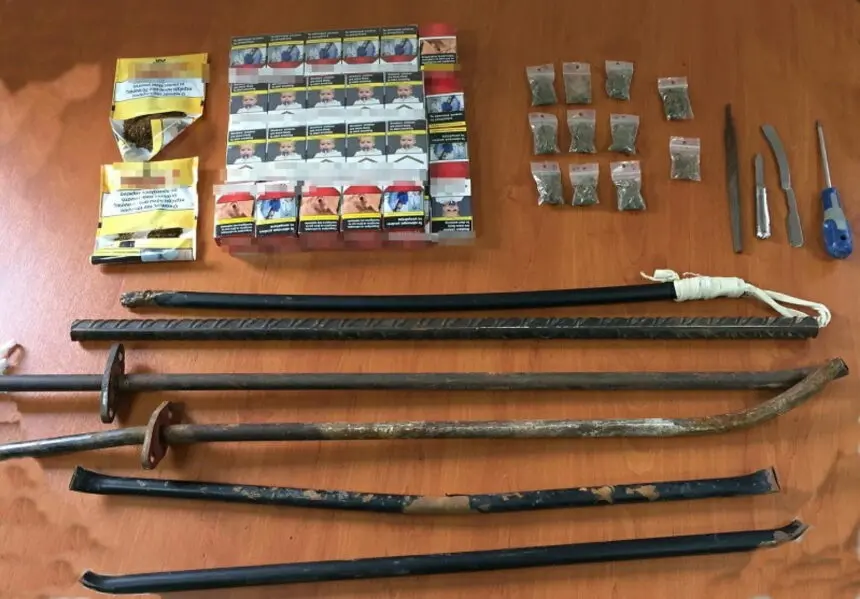• κατασχέθηκαν μεταλλικοί ράβδοι, αναδιπλούμενοι σουγιάδες, κατσαβίδι, ποσότητες ακατέργαστης κάνναβης, πακέτα λαθραίων τσιγάρων και ποσότητα αδασμολόγητου καπνού.