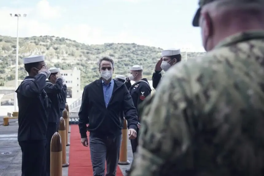 Τον Πρωθυπουργό υποδέχθηκαν ο διοικητής των αμερικανικών ναυτικών δυνάμεων στην Ευρώπη και την Αφρική, Ναύαρχος Robert Burke, και ο Υποναύαρχος Scott Robertson, διοικητής της ομάδας κρούσης της οποίας ηγείται το «Eisenhower», ενώ ξεναγήθηκε στο αεροπλανοφόρο από τον πλοίαρχο Paul Campagna.