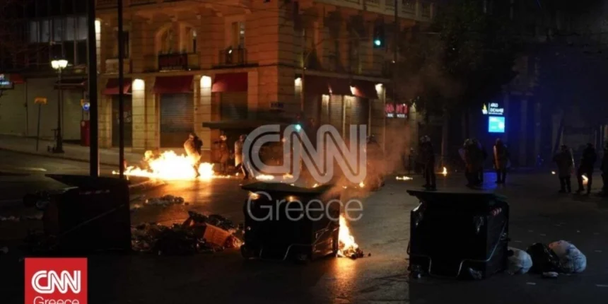 Σύμφωνα με την ανακοίνωση της αστυνομίας: «ομάδα ατόμων στην κάτω πλευρά της Πλατείας Συντάγματος και συγκεκριμένα στην οδό Φιλλελήνων και στην οδό Μητροπόλεως έβαλαν φωτιές σε κάδους σκουπιδιών και εκτόξευσαν βόμβες μολότοφ, πέτρες και φωτοβολίδες εναντίων αστυνομικών δυνάμεων, που απάντησαν με χρήση χημικών».