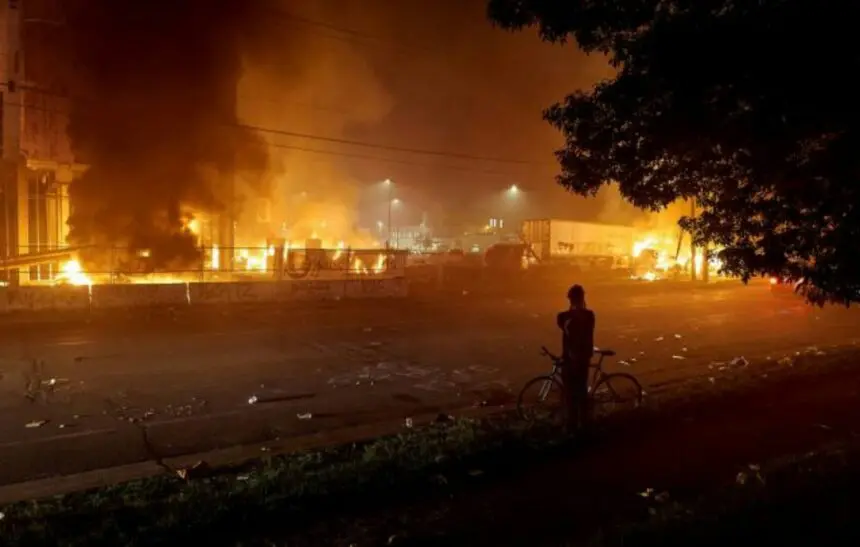 Οι εικόνες καταστροφής από τις διαδηλώσεις στη Μινεάπολη έχουν κατακλύσει τα social media, με την φωτογραφία ενός κτιρίου που έχει τυλιχθεί στις φλόγες να έχει ξεχωρίσει.