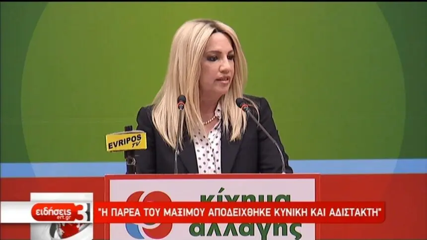 Κυνισμό και αναλγησία καταλόγισε στην κυβέρνηση η Φώφη Γεννηματά απο τη Χαλκίδα, όπου πραγματοποιεί περιοδεία και κάλεσε όσους θέλουν να τελειώσουν, όπως είπε, με τον κ. Τσίπρα, να ψηφίσουν το Κίνημα Αλλαγής.