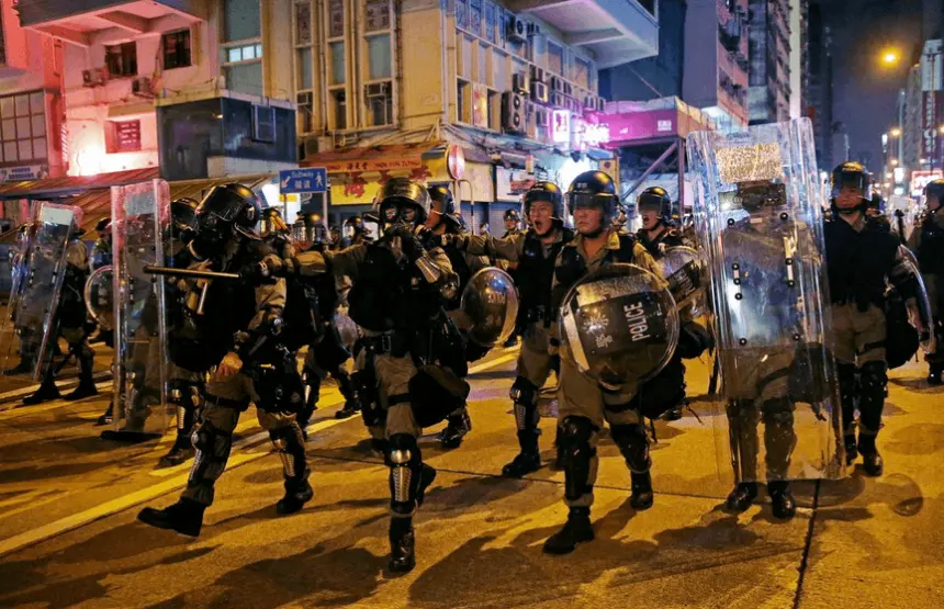 Χθες η αστυνομία έκανε εκτεταμένη χρήση δακρυγόνων στις συγκρούσεις με ακτιβιστές, που οι περισσότεροι ήταν ντυμένοι στα μαύρα, στην περιοχή Καουλούν της πόλης, στη νέα κλιμάκωση έπειτα από δύο και πλέον μήνες διαδηλώσεων ενάντια στο προτεινόμενο νομοσχέδιο για την έκδοση υπόπτων στην Κίνα.