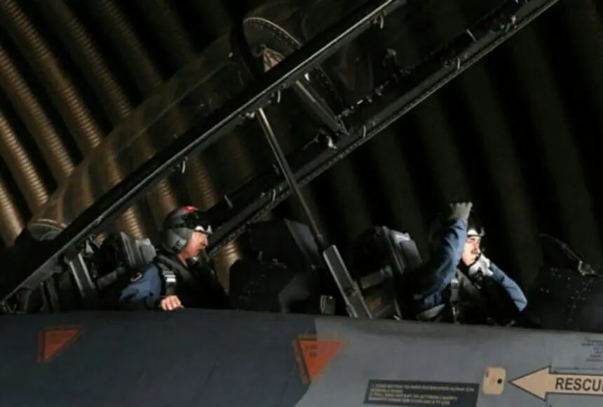 Αφού φόρεσαν τον εξοπλισμό τους ο Ακάρ και οι διοικητές μπήκαν στα cockpit των F-16 όταν ολοκληρώθηκαν οι τελικοί έλεγχοι.