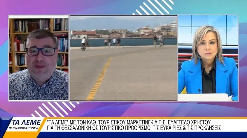 Για την καθιέρωση της Θεσσαλονίκης ως city-break προορισμό αλλά και για τα προβλήματα που εντοπίζουν οι τουρίστες κατά την επίσκεψή τους στην πόλη, σύμφωνα με έρευνα του Διεθνούς Πανεπιστημίου Ελλάδος, μίλησε μεταξύ άλλων στην εκπομπή «ΤΑ ΛΕΜΕ» στη ΒΕΡΓΙΝΑ ΤΗΛΕΟΡΑΣΗ και στη δημοσιογράφο Χριστίνα Τσόρμπα ο καθηγητής τουριστικού μάρκετινγκ και κοσμήτορας της Σχολής Οικονομίας και Διοίκησης ΔΙΠΑΕ Ευάγγελος Χρήστου.