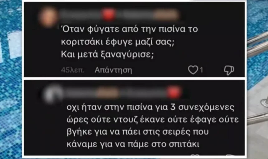 Η απάντηση σοκαριστική: «Όχι, ήταν στην πισίνα για 3 συνεχόμενες ώρες, ούτε ντους έκανε, ούτε έφαγε, ούτε βγήκε για να πάει στις σειρές που κάναμε, για να πάμε στο σπιτάκι».