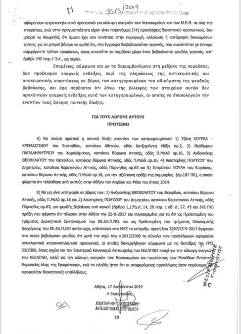 Το πόρισμα αναφέρεται σε διαδικασίες οι οποίες έλαβαν χώρα σε χρονική περίοδο που αφενός μεν ο ίδιος δεν είχα οποιαδήποτε σχετική αρμοδιότητα, καθώς ήμουν απλός υπάλληλος και ουδέποτε άσκησα Διοίκηση, αφετέρου η κυρία Ανδρονίκη Θεοφιλάτου δεν εργαζόταν καν στο ΚΕ.ΕΛ.Π.ΝΟ. καθώς προσελήφθη μεταγενέστερα. Τόσο «σοβαρό» και «αξιόπιστο» είναι το πόρισμα της Γενικής Επιθεωρήτριας Μαρίας Παπασπύρου, στο οποίο κατά τις πληροφορίες στηρίζεται η ποινική δίωξη.