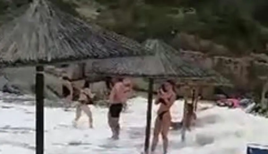 Πρωτόγνωρο φαινόμενο στην παραλία Τηγάνια στη Σιθωνία Χαλκιδικής. Γέμισε «αφρούς» η ακτή. Κάλυψε μέχρι και τις ξαπλώστρες.