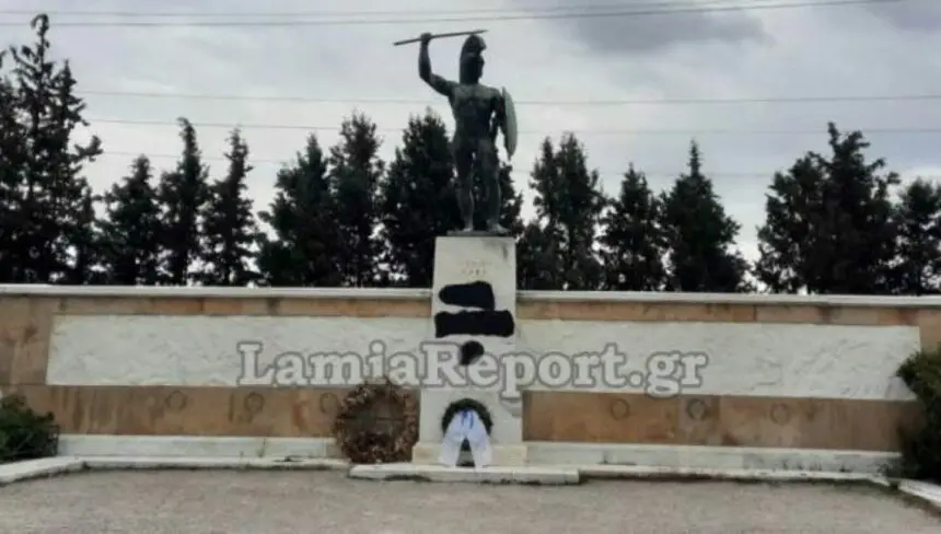 Εβαψαν με μαύρη μπογιά κάτω από το «ΜΟΛΩΝ ΛΑΒΕ» επιδεικνύοντας την αμορφωσιά τους και την έλλειψη σεβασμού προς ιδανικά που συμβολίζει ο αγώνας του Λεωνίδα στο πέρας των αιώνων.