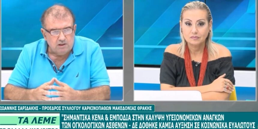 Για την απουσία οποιασδήποτε δήλωσης του πρωθυπουργού για το νέο αντικαρκινικό νοσοκομείο στη Θεσσαλονίκη αλλά και για την ανάγκη οικονομικής ενίσχυσης με ένα μηνιαίο επίδομα τύπου ΕΚΑΣ των οικονομικά αδύναμων, μίλησε μεταξύ άλλων στην εκπομπή «ΤΑ ΛΕΜΕ» στη ΒΕΡΓΙΝΑ ΤΗΛΕΟΡΑΣΗ και στη δημοσιογράφο Χριστίνα Τσόρμπα ο Πρόεδρος του Συλλόγου Καρκινοπαθών Μακεδονίας Θράκης Ιωάννης Σαριδάκης.