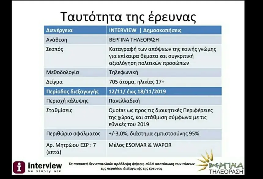 Δείτε αναλυτικά τη δημοσκόπηση της Βεργίνα τηλεόραση