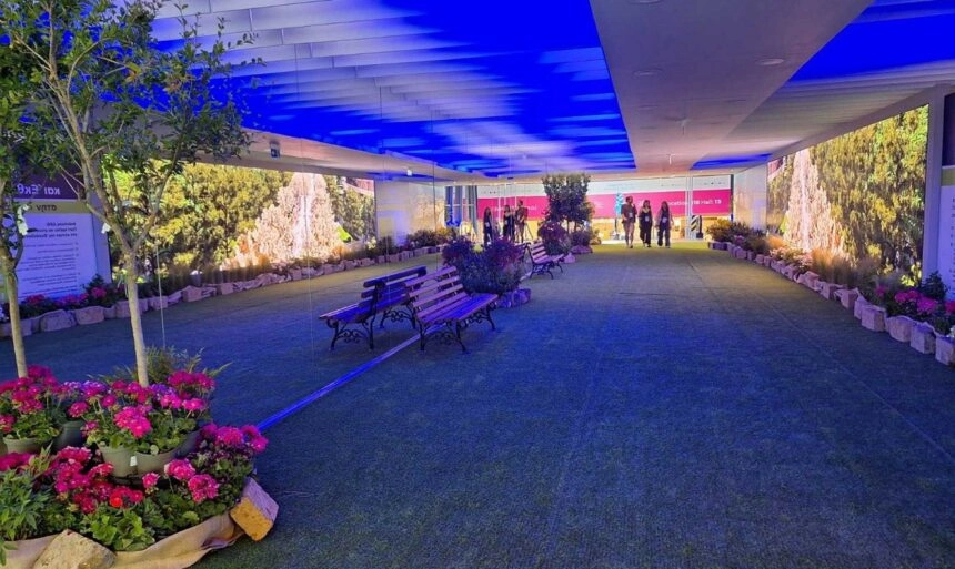 Μετέτρεψε έτσι την αερογέφυρα που ενώνει τα περίπτερα 15 και 13 σε πράσινο διάδρομο γεμάτο φυτά και παγκάκια, ενώ στους τοίχους έπαιζε βίντεο με μια περιήγηση στο νέο Διεθνές Εκθεσιακό και Συνεδριακό Κέντρο Θεσσαλονίκης. Ιδιαίτερη έμφαση δόθηκε στον πράσινο χαρακτήρα της ανάπλασης και στο πάρκο που αναπτύσσεται παράλληλα σε έκταση 100 στρεμμάτων -που είναι και το επίμαχο θέμα για τους αντιδρώντες-αλλά και στην οικονομική «ένεση» από τις νέες εκθεσιακές εγκαταστάσεις.