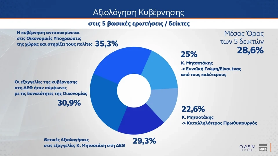 Στην αποψινή δημοσκόπηση της MRB οι πολίτες κλήθηκαν να αξιολογήσουν την κυβέρνηση με βάση πέντε δείκτες.