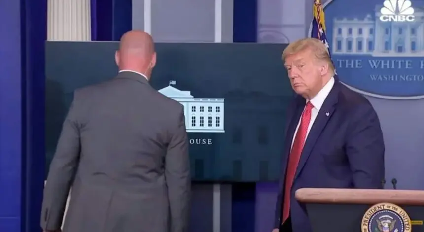 Αναστάτωση επικράτησε κατά τη διάρκεια της συνέντευξης Τύπου του Ντόναλντ Τραμπ χθες, Δευτέρα, (σ.σ. Τρίτη, ώρα Ελλάδας), όταν ξαφνικά ο Αμερικανός πρόεδρος αποχώρησε από την αίθουσα, προκαλώντας την έκπληξη των διαπιστευμένων δημοσιογράφων.