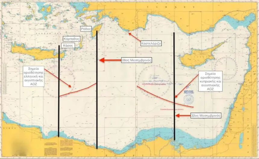 Ετσι ικανοποιείται η αρχική απαίτηση του Καΐρου που δεν αναγνωρίζει το δικαίωμα ΑΟΖ στο σύμπλεγμα της Μεγίστης και ανατολικά του 28ου Μεσημβρινού στην Ρόδο, όπως είχε πρώτο αποκαλύψει το pronews.gr