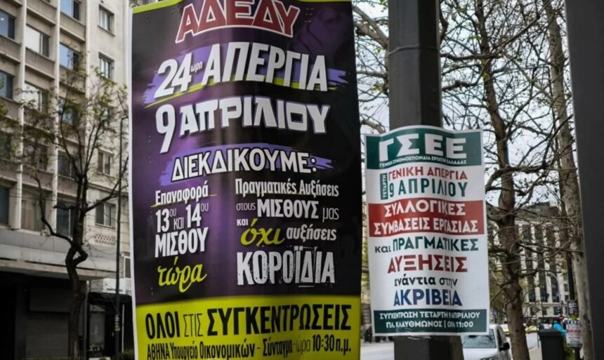 Ειδικότερα, στη γενική 24ωρη απεργία που κήρυξαν για σήμερα, 9 Απριλίου, η Γενική Συνομοσπονδία Εργατών Ελλάδας (ΓΣΕΕ) και η Ανώτατη Διοίκηση Ενώσεων Δημοσίων Υπαλλήλων (ΑΔΕΔΥ), συμμετέχουν Ομοσπονδίες, συνδικάτα και σωματεία του ιδιωτικού και του δημόσιου τομέα, διεκδικώντας επίσης Συλλογικές Συμβάσεις Εργασίας και επαναφορά του 13ου και του 14ου μισθού στο Δημόσιο.