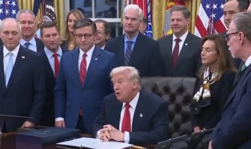 Τις τελευταίες 43 ημέρες, οι Δημοκρατικοί στο Κογκρέσο έκλεισαν την κυβέρνηση των Ηνωμένων Πολιτειών σε μια προσπάθεια να εκβιάσουν τους Αμερικανούς φορολογούμενους για εκατοντάδες δισεκατομμύρια δολάρια για παράνομους μετανάστες… Σήμερα, στέλνουμε ένα σαφές μήνυμα ότι ΔΕΝ θα ενδώσουμε ΠΟΤΕ σε εκβιασμούς», δήλωσε ο Τραμπ κατά την υπογραφή του νομοσχεδίου.