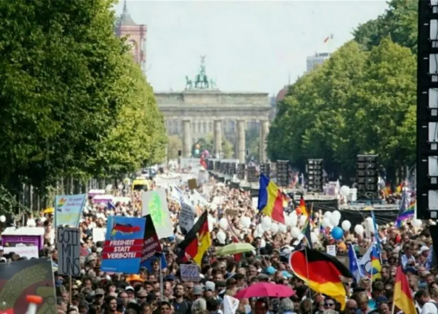 Με τίτλο “γιορτή της ελευθερίας και της ειρήνης”, η συγκέντρωση στο Βερολίνο, στην οποία μετείχαν πολίτες και είναι η δεύτερη του είδους μέσα σε έναν μήνα και ανησυχεί τις αρχές.
