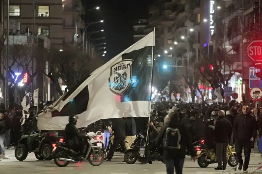 Μαζική διαμαρτυρία πραγματοποίησαν το απόγευμα της Πέμπτης οπαδοί του ΠΑΟΚ, στο κέντρο της Θεσσαλονίκη.