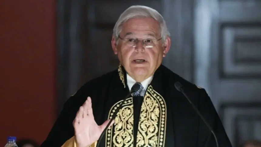 Επίτιμος διδάκτορας του Πανεπιστημίου Αθηνών αναγορεύτηκε ο αμερικανός γερουσιαστής και πρόεδρος της Επιτροπής Εξωτερικών Σχέσεων της Γερουσίας Ρόμπερτ Μενέντεζ σε τελετή που πραγματοποιήθηκε στη μεγάλη αίθουσα του Ιδρύματος.