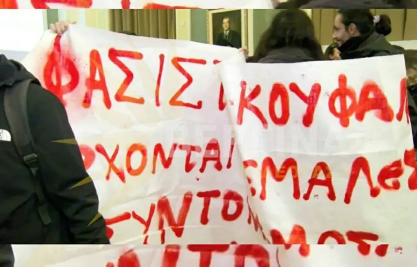Με ύβρεις, συνθήματα και αποδοκιμασίες άτομα του αντιεξουσιαστικού χώρου εισέβαλαν το βράδυ της Δευτέρας στην αίθουσα τελετών του κτηρίου της Παλαιάς Φιλοσοφικής Σχολής και ματαίωσαν τη βιβλιοπαρουσίαση του βιβλίου «Η Ελλάδα που Ματώνει» της πρώην πρυτάνεως του Πανεπιστημίου Μακεδονίας Μαρίας Δελιβάνη με ομιλητές τους δημοσιογράφους Μανόλη Κοττάκη, Γιώργο Χαρβαλιά, Στέργιο Καλόγηρο και Παντελή Σαββίδη, καθώς και τον πρόεδρο του κόμματος «Νίκη» Δημήτρη Νατσιό. Οι αντιεξουσιαστές με χυδαίες εκφράσεις αποδοκίμασαν τους παρευρισκόμενους και εμπόδισαν τη διεξαγωγή της εκδήλωσης επειδή όπως είπαν διαφωνούν με το περιεχόμενό της.