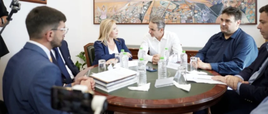 Ο Πρωθυπουργός Κυριάκος Μητσοτάκης επισκέφθηκε το μεσημέρι τη Μύρινα της Λήμνου όπου προήδρευσε σε σύσκεψη με εκπροσώπους της Τοπικής Αυτοδιοίκησης και των φορέων της Λήμνου και του Αη Στράτη.